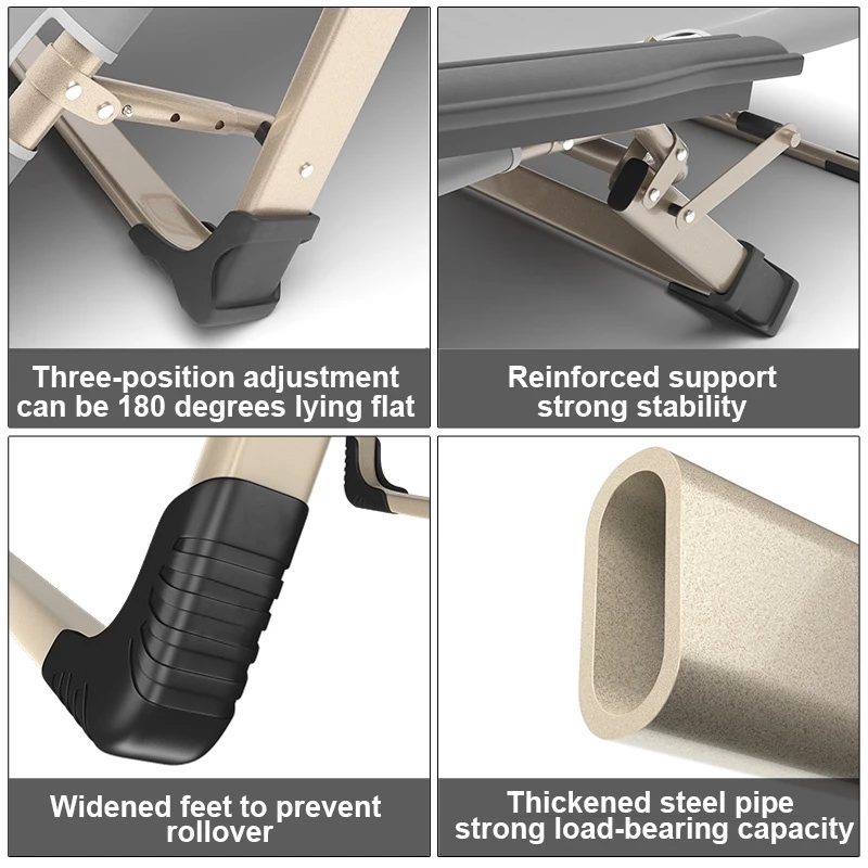 Enjoy effortless relaxation with the SPORT Folding Bed Lazy Chair. Its durable carbon steel frame ensures long-lasting support, while the thick Oxford cloth and plush cotton pad provide a soft, breathable, and comfortable surface for rest and sleep.